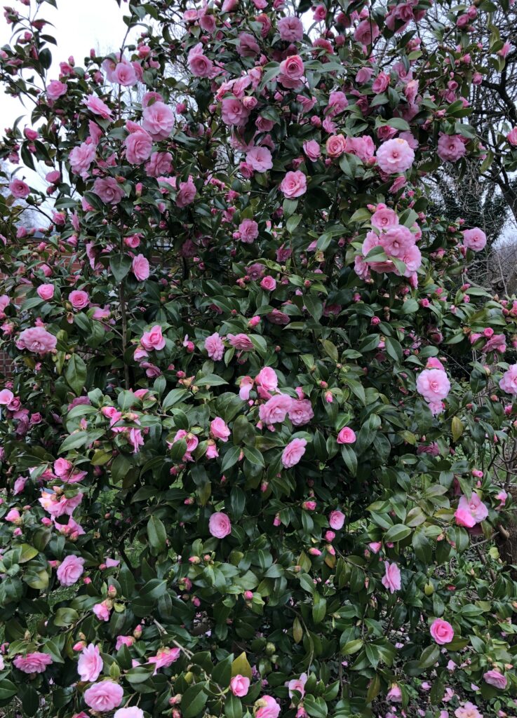 Draußen erfreuen uns jetzt die immergrünen Kamelien, üppig blühend und verzweigt – vorausgesetzt sie stehen am richtigen Standort – hell bzw. im lichten Halbschatten, sowie windgeschützt und warm und erleiden während der Blütezeit keinen Frost.