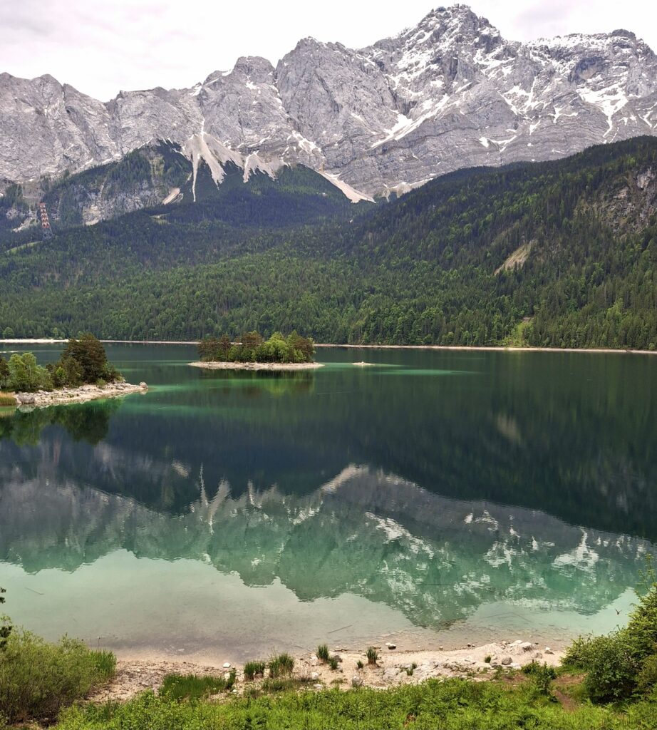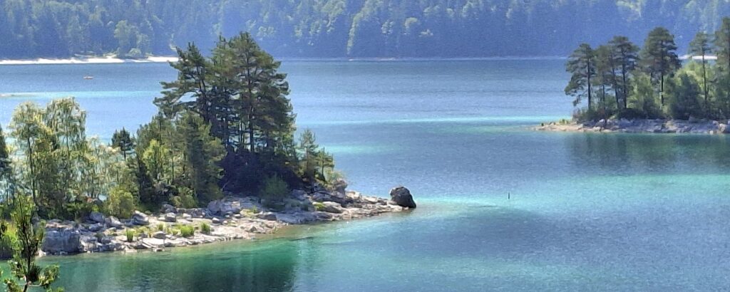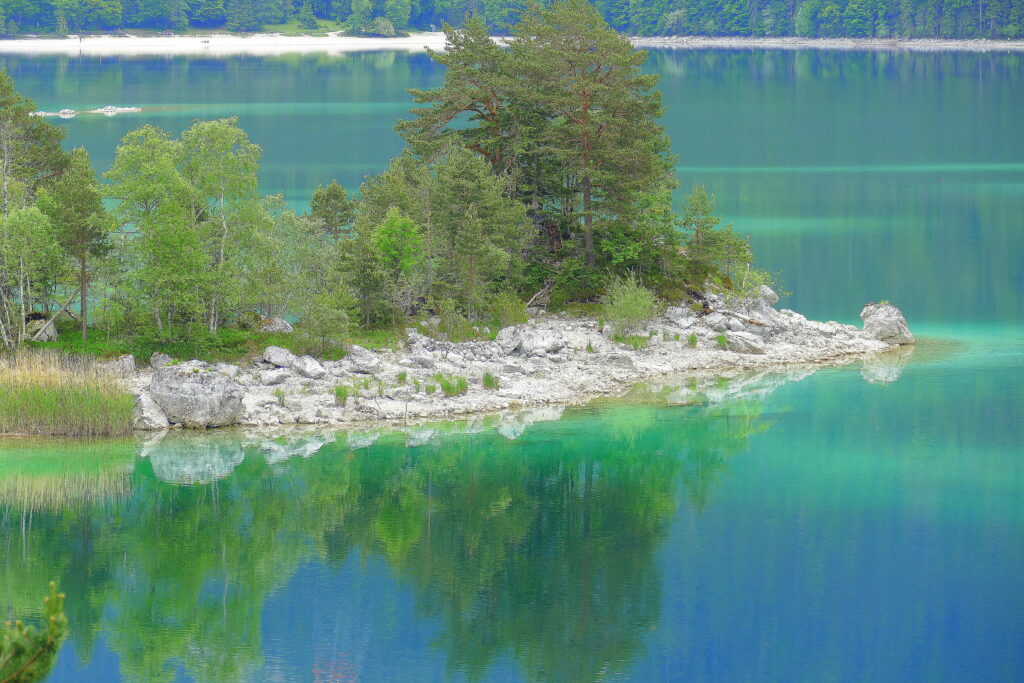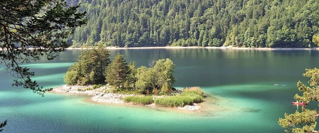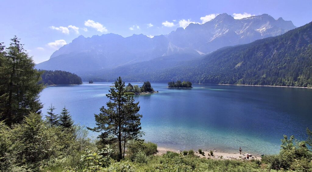 Vom Badersee kann man einen ausgeschilderten Weg zum Eibsee wandern. Von Grainau, Untergrainau (dem Zugspitzdorf) aus kann mit dem Bähnchen direkt zur Zugspitze oder Eibsee gefahren werden. Am Eibsee wird gewandert, gejoggt, Rad gefahren, geschwommen und gerudert. Auf dem Rundgang kommt man an herrliche Buchten und 8 Inseln vorbei und hat wunderbare Ausblicke, auf die Zugspitze, die sich im See spiegelt. Der See soll sich aus dem Schmelzwasser eines Gletschers, in einer Bodensenke gesammelt haben. Im Verlauf des Tages wird es am Eibsee immer voller, und die reinste Völkerwanderung bewegt sich um den See.