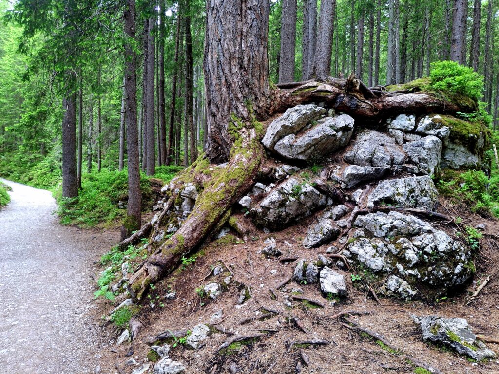 Mächtige Felsblöcke am Wegesrand erinnern an eine Naturkatastrophe, den größten Bergsturz in den Bayrischen Alpen. Vor 3 750 Jahren brach die Westflanke des Zugspitz-Massivs ab und stürzte ins Tal.