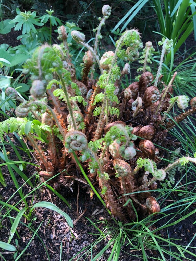 Die Staudenbeete brauchen jetzt Pflege wie Ausputzen und von Unkraut befreien, sowie anschließend etwas Dünger, wie z.B. Hornspäne.