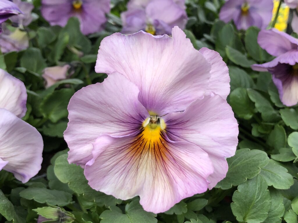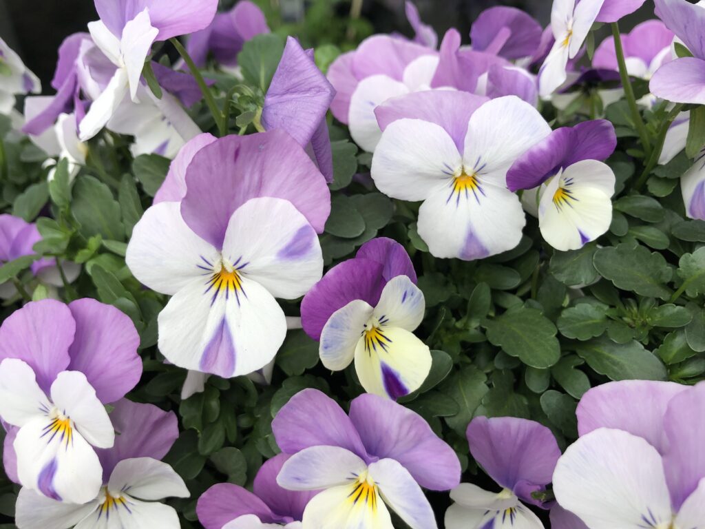 Das Hornveilchen (Viola cornuta) gehört zu den beliebtesten Klassikern und es gibt eine schier unendliche Farbvariation in den verschiedensten Sorten. Sie sind eine Art Mini- Stiefmütterchen mit vielen kleinen Blüten und blühen von März/April bis in den Juni. Verblühtes sollte man regelmäßig ausknipsen, damit immer neue Blüten gebildet werden und sich bei Feuchtigkeit kein Schimmel bildet. Im Sommer, bei hohen Temperaturen verlieren sie ihren kompakten Wuchs und verblassen – so kann man sich im Herbst oder im nächsten Frühjahr an neu erstandenen Pflanzen erfreuen oder gar im Früh- bis Spätsommer selber aussäen.