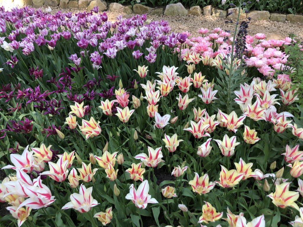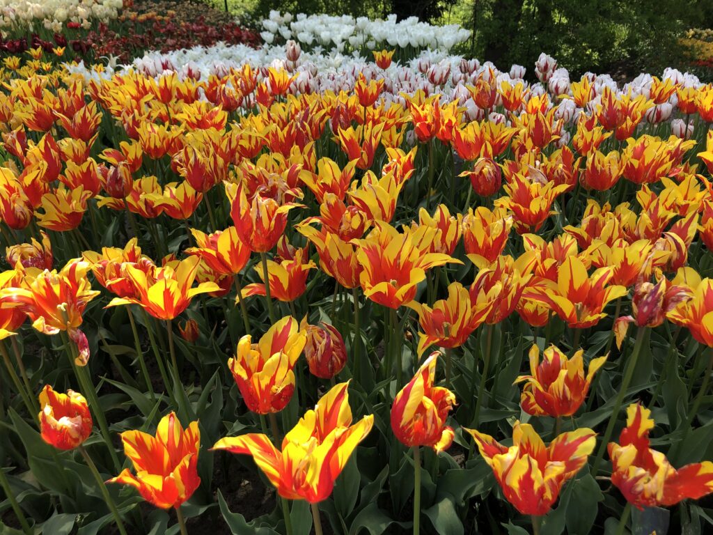 Die Tulpenblüte reicht von Ende März bis Mitte Mai, aber die Hauptblüte im Freien erreicht ihren Höhepunkt im April.