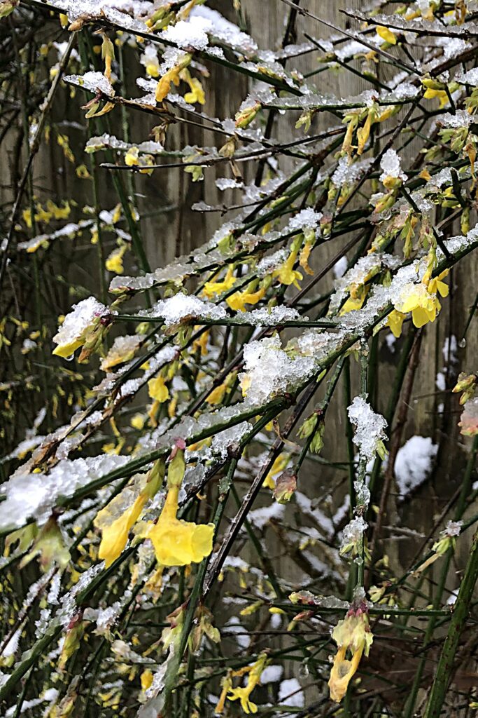 Verbreitet dagegen ist der Winterjasmin (Jasminum nudiflorum) mit leuchtend gelben, zahlreichen Blüten. Wegen seiner außergewöhnlich frühen Blüte, die fortlaufend von Dezember bis in den April dauern kann, sorgt er für farbige Akzente. Soll er nach oben wachsen, so benötigt er eine Kletterhilfe wie Spaliere, Zäune oder Mauern, denn die langen biegsamen Triebe bilden keine speziellen Kletterorgane. Man kann ihn aber auch in einen Kübel pflanzen und mit Vlies o.ä. vor Frost schützen.