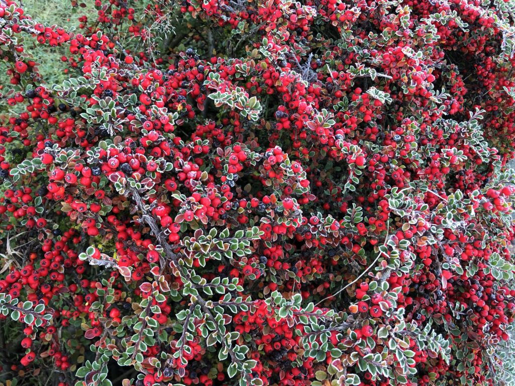 Zu den immergrünen Pflanzen zählen bekanntlich fast alle Koniferen – Arten, aber auch Buchsbaum, Efeu, Rhododendron, Kirschlorbeer, Schneeball, Berberitze und Feuerdorn, der uns zudem noch mit seinen leuchtenden gelben, roten oder orangen Beeren erfreut.