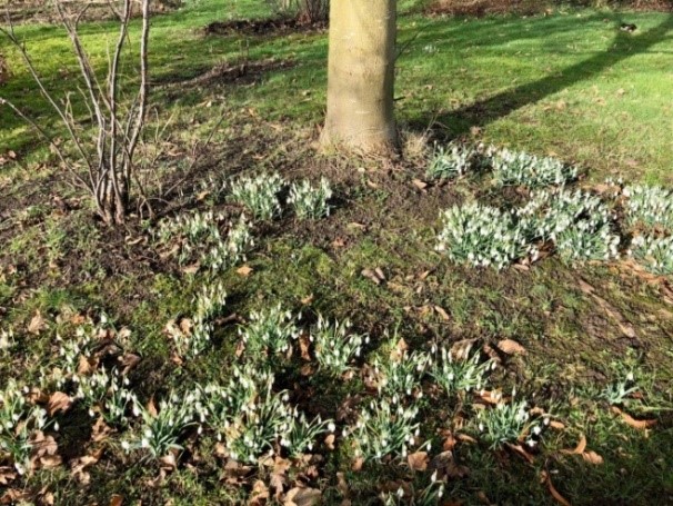 Ende des Monats kommen im Unterwuchs von Gehölzen und Hecken, sowie an Wegesrändern die ersten weißen Schneeglöckchen (Galanthus) hervor.