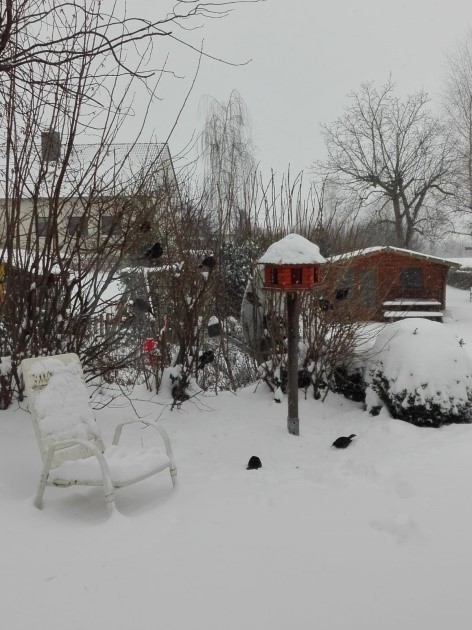 Man kann die Futterstellen in der Nähe des Hauses aufstellen – Mindestabstand aber 2 m von Glasflächen – so dass man das Treiben am besten beobachten kann.