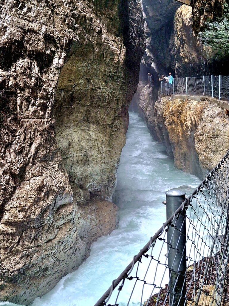 Zusammen mit einer Schulklasse erreichte ich die Partnach-Klamm. Das feuchte Abenteuer begann.